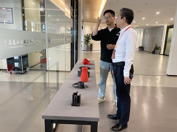 会后,我校一行走访了温州大学校史博物馆、浙江传统戏曲研究与传承中心、温州市发绣研究所、激光加工机器人国际科技合作基地、校友之家等,深入了解温州大学的发展历史、文化传承以及近年来在提升高等教育内涵式发展水平、推动“产城教”全链条融合发展、擦亮开放合作特色化办学品牌等方面取得的显著成就。在创新创业学院和众创空间,云慧科技、焕新科技、创源科技等创业团队负责人分别介绍了运行情况。余江与师生开展座谈交流,观摩创业项目路演,并详细询问了温大关于创新创业教育的开展情况。