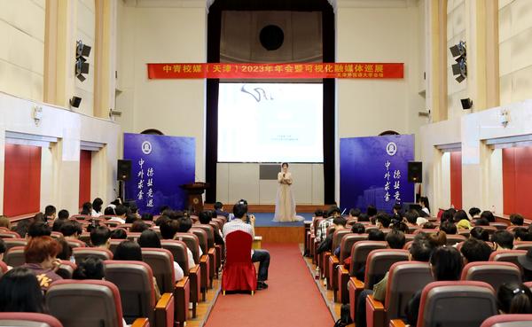 近日,中青校媒(天津)2023年年会暨可视化融媒体巡展在我校钟楼报告厅举行。中国青年报天津记者站胡春艳、团市委综合服务中心津彩青春杨冉冉、中国青年报中青校媒秘书处罗希,我校党委常委、党委宣传部部长陈占权应邀出席,中青校媒(天津)主席团成员及来自天津市52家高校校园媒体的近200名代表参加会议。