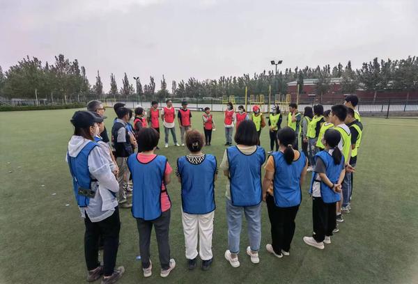本次活动在天津大学心理中心教师、高级拓展培训师吴凤伟老师的指导下,开展了“破冰热身”、“自我介绍”、“同心协力”、“红色传承”四个游戏环节,其中“破冰热身”环节通过听从指导教师的口令,做出相应的动作,训练大家的协调能力和反应速度;“自我介绍”环节通过10人一队的形式,每队共同展示队员的姓名和本队的口号,达到队员之间互相熟悉,合作展示的目的;“同心协力”环节,需要10人共同牵起同心鼓,并能够齐心协力地接球,接球数量最多的队伍获胜;“红色传承”环节,由指导教师分别给每队展示30张党和国家发展的重大事件的卡片,需要每队在指定时间内,将卡片按照时间顺序排序,排序正确且提交卡片数量多的队伍获胜。