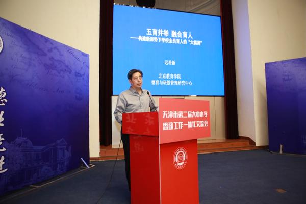 交流会分为上下两个半场,主旨发言环节邀请到首都经济贸易大学原党委书记冯培教授、北京教育学院校长研修学院迟希新教授、天津大学心理健康教育中心主任杨丽、天津市耀华中学党委副书记、校长侯立瑛,开云链接官网附属滨海外国语学校党委书记、校长王丽分别就“推进大中小思政教育一体化的两个思维”“五育并举 融合育人------构建新形势下学校全员育人大棋局”“大中小学生心理危机预防与干预策略”“汇聚一体化建设合力 共筑思政教育同心圆”“与新时代同频共振 用英语讲好中国故事------中小学英语课程思政建设的思考与实践”等做了深刻讲解论述。