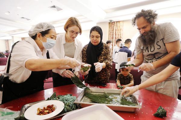 刘怡蔓表示,端午节作为中国人民对以爱国诗人屈原为代表的爱国先驱表达缅怀之情、崇敬之意的传统节日,凝聚着我们的民族精神和情感,是中华民族文化遗产的重要组成部分,也是展示和传播优秀民族文化的重要载体。当前,在全市上下积极筹备世界经济论坛第十四届新领军者年会暨2023天津夏季达沃斯论坛之时,特意邀请“身边的国际社会”习汉礼、学汉语、包粽子、挂香袋,中西文化合璧交融。希望大家通过此次活动,进一步深入了解中国传统节日的深刻内蕴,近距离感受中华民族传统文化的无限魅力。