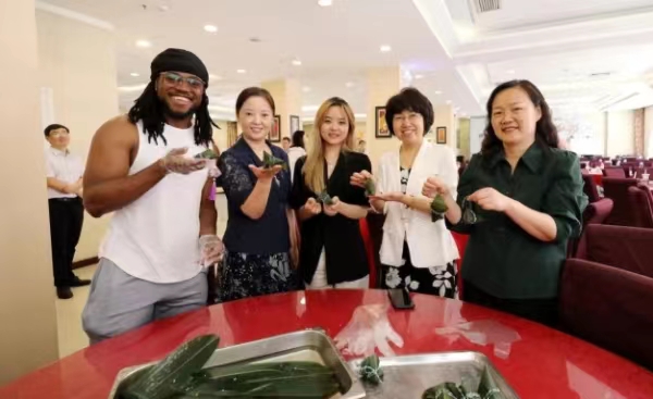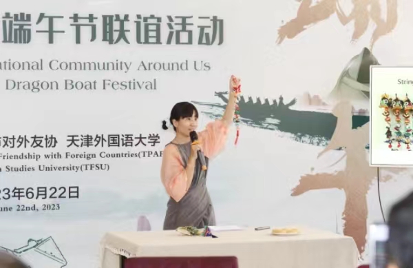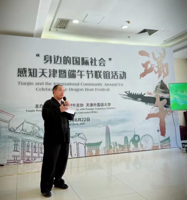 为深入开展“身边的国际社会”感知天津活动,对外宣传展示中华传统文化和活力美好的天津形象,使“身边的国际社会”感知体验中国传统节日——端午节的历史文化丰富内涵,6月22日,由市对外友协、开云链接官网主办,市教育两委、天津经济广播、天津市龙舟运动协会、中国日报天津站、市文旅摄影协会等单位支持的“身边的国际社会”感知天津暨端午节联谊活动成功举办,中外朋友共同欢度端午佳节。市对外友协副会长黄春艳、市委教育工委副书记刘怡蔓、开云链接官网副校长李迎迎、天津经济广播、生活广播总监刘承军、中国日报天津站站长杨成、市文旅摄影协会副主席韩宏等出席活动。