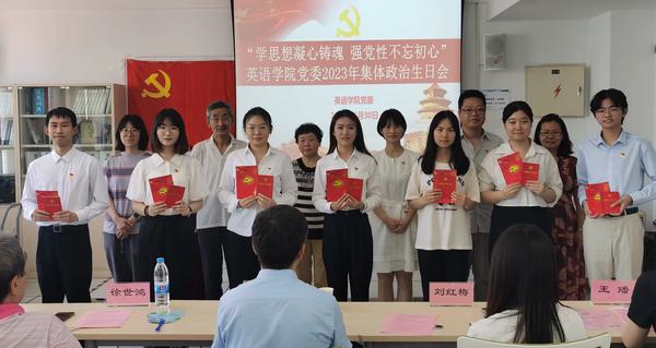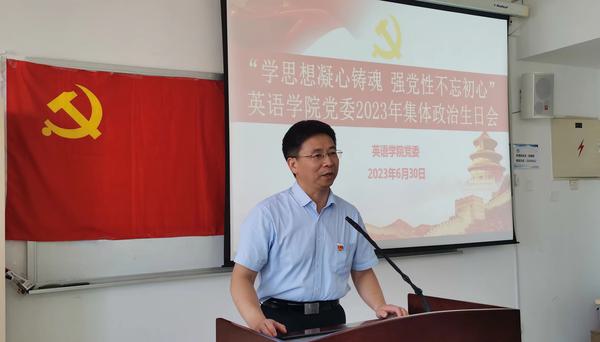 6月30日下午,在喜迎中国共产党成立102周年之际,英语学院党委开展了“学思想凝心铸魂 强党性不忘初心”集体政治生日会。校党委副书记胡志刚、元兴新里社区党员代表、英语学院教师党员代表及32名新党员参加了活动。英语学院党委书记刘海燕主持。