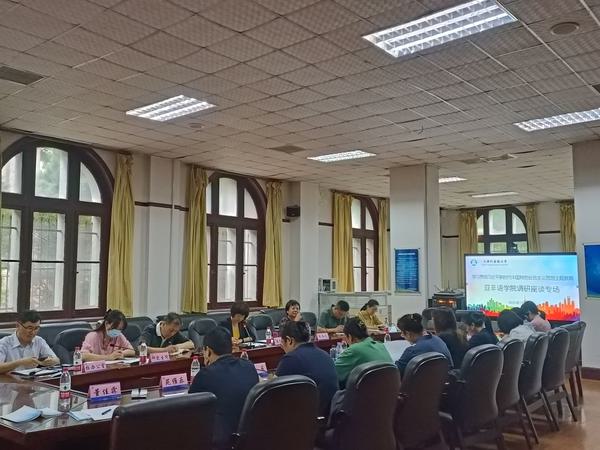 为进一步推动学习贯彻习近平新时代中国特色社会主义思想主题教育走深走实,促进学校高质量发展,7月10日-12日,校党委书记周红蕾、副校长余江分别深入求索荣誉学院、亚非语学院、国际教育学院、通识教育学院召开调研工作座谈会。学校办公室、党委教师工作部、教务处、科研处、国际合作与交流处、研究生院相关负责同志,各教学单位学院班子成员、教研室(系)主任、管理干部及教师代表参加座谈。