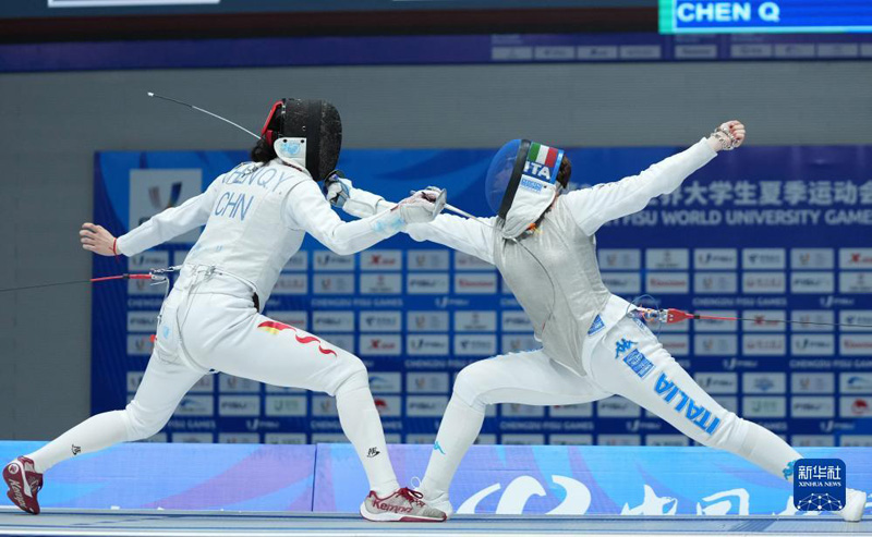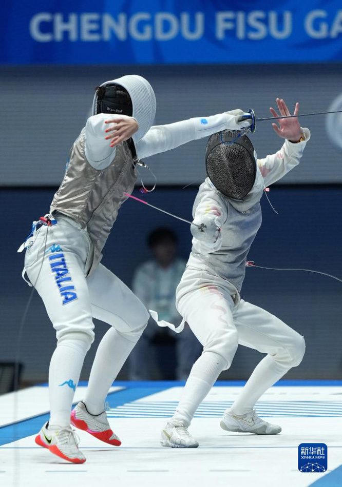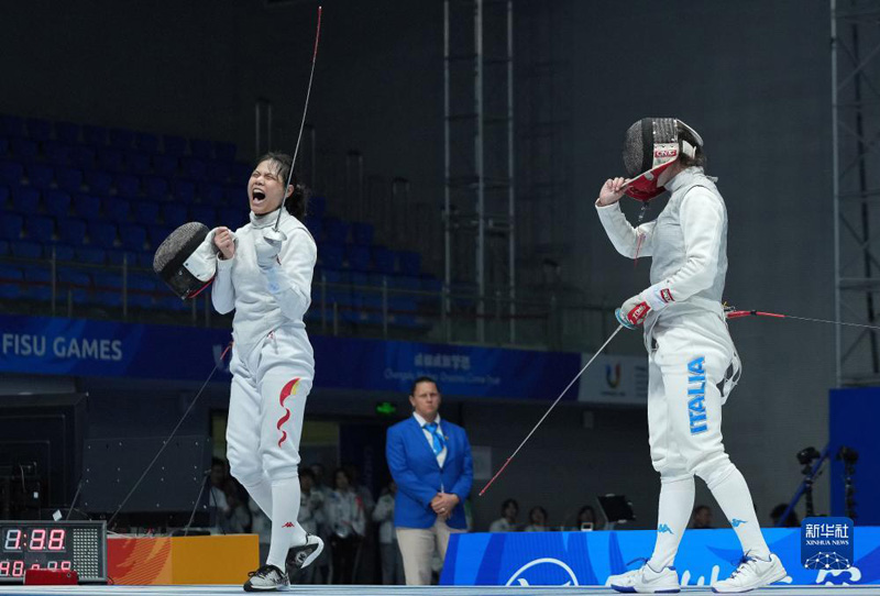 当日,在成都举行的第31届世界大学生夏季运动会击剑女子花剑团体金牌赛中,中国队以45比22战胜意大利队,获得金牌。