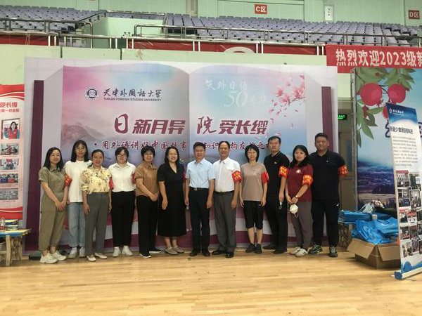 亚非语学院为每名新生精心准备了文创盲盒,并特别设置合影留念板,放置各类天津相关的介绍卡片,在拍照留念的同时,向新生介绍所求学的城市------天津。此外,学生党员、入党积极分子、学生会成员主动担任志愿者,为新生讲解注意事项,助力新生快速了解和适应大学生活。