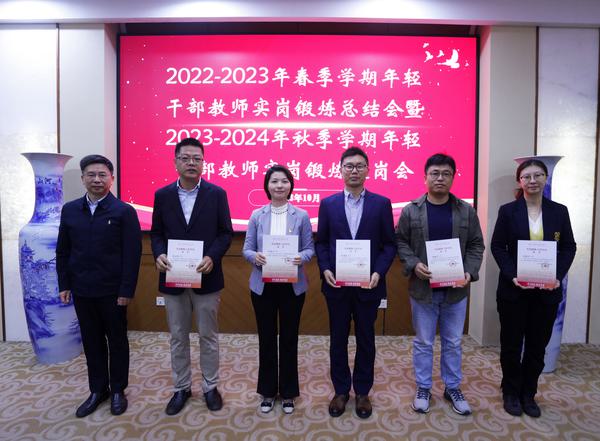 会上,在2022-2023学年春季学期参加校内外实岗锻炼的干部教师依次进行交流发言,纷纷表示实岗锻炼期间在积极融入新环境、承担新工作、完成新任务中,开拓了眼界,提升了能力,也认识到了自身的不足,今后将把实岗锻炼中所学所悟、所得所获运用到工作中去,常怀本领恐慌,常怀能力危机,常知学后而觉不足,立足岗位做出自己应有的贡献。交流发言结束后,参会领导为同志们颁发了实岗锻炼工作经历证书,并合影留念。党委组织部负责同志宣布了2023-2024年秋季学期年轻干部教师实岗锻炼安排,3位年轻干部教师将在校内有关部门参加实岗锻炼。