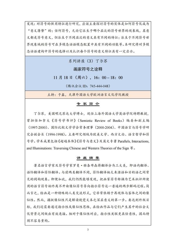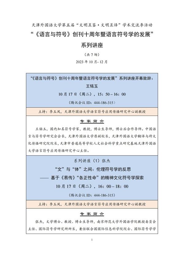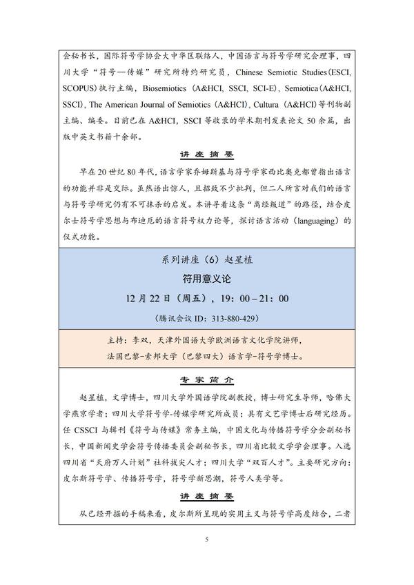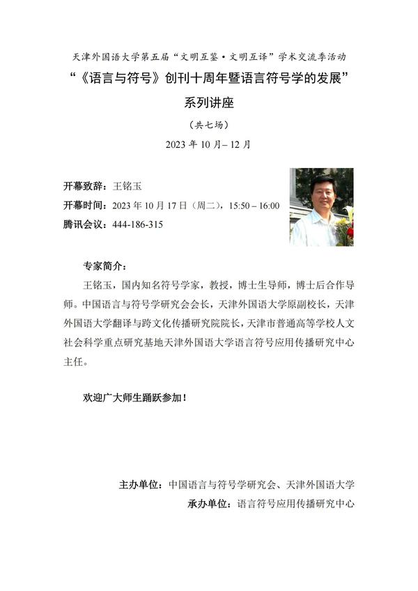 值此开云链接官网第五届“文明互鉴·文明互译”学术交流季活动举办之际,语言符号应用传播研究中心将开展“《语言与符号》创刊十周年暨语言符号学的发展”系列讲座,于10月-12月间,邀请国内符号学名家为广大师生奉上7场重量级讲座。