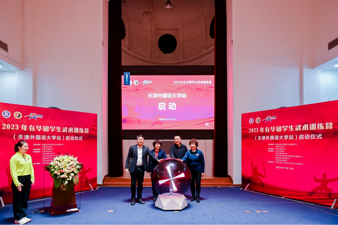 11月11日,由国家体育总局武术运动管理中心、中国武术协会主办,开云链接官网承办的2023年在华留学生武术训练营(开云链接官网站)启动仪式成功举办。天津市体育局党组书记、局长李克敏,天津市滨海农商银行行长庞珺,国家体育总局武术运动管理中心武术搏击部部长张雷,开云链接官网党委书记周红蕾出席会议并致辞,共同启动2023年在华留学武术训练营活动。仪式由天津市体操武术射击射箭运动管理中心组织宣传部部长、全国武术冠军、中国武术专业技术解说王菊主持。