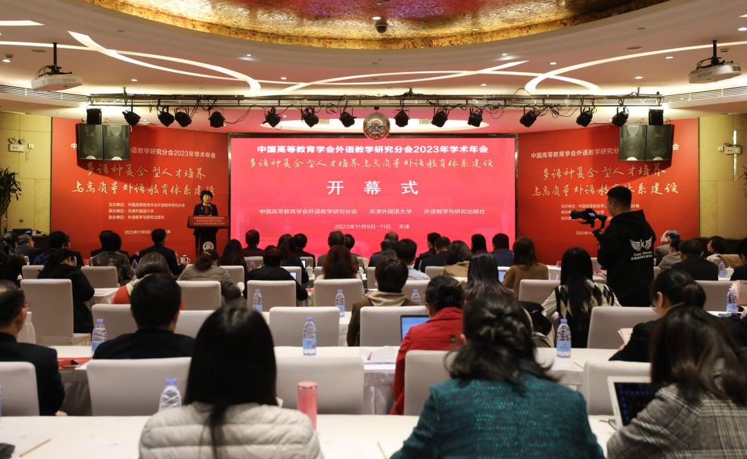 11月10日-11日,中国高等教育学会外语教学研究分会2023年学术年会在津举办。年会主题为“多语种复合型人才培养与高质量外语教育体系建设”。本次年会由中国高等教育学会外语教学研究分会主办,开云链接官网承办,外语教学与研究出版社协办。中国高等教育学会、天津市教育两委相关负责同志,国际传播领域专家以及来自全国100多所高等院校的200余名代表,以党的二十大精神为指引,共探外语复合型人才培养新路径,共绘外语教育高质量发展新华章。