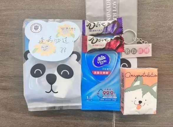 一些学校为学生考虑的周到程度简直堪比亲妈。天津大学后勤基建部为考生提供加油包,包含纸巾、湿巾、巧克力、钥匙链、手写加油便笺。考试用品包含黑水笔、2B铅笔、橡皮等。南开大学材料科学与工程学院等学院也为考研学生精心准备了满载祝福的“考研加油包”,包内含有透明文具袋、各色签字笔、橡皮、涂卡笔、黑色笔芯、直尺、牛奶、饼干等爱心满满的小礼物,以及辅导员亲手写下的祝福卡片,助力学生在考试中一往直前、崭露锋芒。
