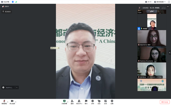 1月26日晚,由教育部中外语言交流合作中心主办、我校求索荣誉学院承办的“汉语桥·天津都市风情与经济社会”线上团组交流项目开班仪式顺利举行。我校党委常委、党委统战部部长吴翼彬,统战部副部长于磊,国际合作与交流处处长张占奇,求索荣誉学院班子成员、师生代表以及来自世界各地的百余名学员共同参加线上开班仪式。河西区委统战部分管日常工作副部长、区侨办主任李心冰应邀出席。开班仪式由求索荣誉学院副院长黄骞萱主持。