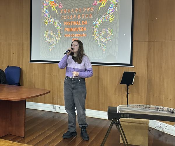 金龙献瑞,辞旧迎新。2月15日下午,葡萄牙里斯本大学孔子学院龙年春节庆祝活动在欢乐祥和的气氛中拉开序幕。里斯本大学副校长若昂·佩肖托、中国驻葡萄牙大使馆教育事务负责人陈默、奥埃拉斯副市长佩德罗·帕塔乔、文学院院长费尔南德斯出席活动并致辞。我校校长陈法春以视频方式送上新春祝福。葡萄牙各界友好人士、孔院中外方院长及师生等一百余人参加活动。
