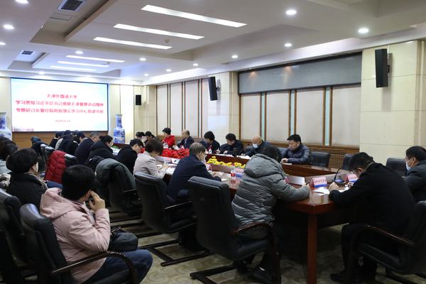 会议强调,学习贯彻习近平总书记视察天津重要讲话精神,一要把学习宣传贯彻习近平总书记视察天津重要讲话作为当前和今后一个时期首要政治任务,原原本本学、联系实际学、带着责任学,全覆盖宣讲、全媒体宣传、深层次解读,项目化清单化抓好落地落实。二要深刻领会把握习近平总书记重要讲话精神的精髓要义和实践要求,结合学校实际,在聚焦学科融合推动复合型人才培养改革创新、突出外语特色加强国际传播能力建设、挖掘校园历史文化底蕴促进高水平大学文化建设、提高大学治理效能办好人民满意的教育等方面下功夫,提升“善”的能力,细化“作”的措施,确保“成”的效果。三要巩固拓展主题教育成效,全面加强党的建设,进一步强化担当作为,以更大决心和力度推进学校改革发展,用心用情为师生办实事,以干部的“辛苦指数”换取广大师生的“幸福指数”,持续营造开拓进取、担当作为、风清气正的政治生态。