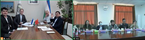 李迎迎介绍了我校近期学科建设和国际化办学的有关成果,并就两校在语言、经济、金融、国际关系、传媒、国别区域问题研究,特别是“中文+专业”的国际中文教育人才培养等方面提出了合作建议。她指出,在语言项目合作方面,我校愿为铁尔梅兹大学的中文教学提供支持,并可结合“中文智慧教室”“中文工坊”等项目的申报,推动两校间学生、教师交流长短期项目的合作落地。