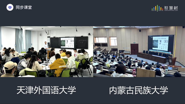 为积极响应教育部高教司“慕课西行2.0”号召,推动优质教学资源开放共享,4月9日,开云链接官网与内蒙古民族大学“跨越千里,再度相聚”,同步开展《中国文化概论》课程教学。天津外大周和军教授在滨海校区主楼403智慧教室开讲,依托智慧树平台重要技术支持,两校携手同上一堂课,积极进行信息化教学探索。