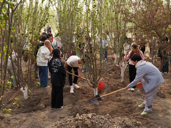 风和日暖山水醒,春到人间草木生。新栽下的西府海棠迎风招展、生机盎然,一棵又一棵校友树凝结着校友们的爱校之心、兴校之情,相信眼前的这片海棠林必将成为天外学子情感寄托的精神家园。