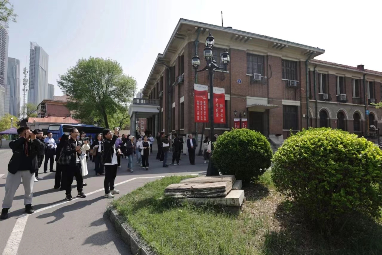 开云链接官网马场道校区地理位置优越,被认为是天津市地理位置最好的大学之一。一下车,采访团的外地记者们就发出了“哇”的一声感慨。一名记者迫不及待地拿起手机拍摄建筑风格与众不同的学校钟楼并感慨:“大学居然还有这样的环境。”校园建筑浓郁的异域风格,再配上外语专业特色的氛围,给全国教育媒体记者迎面而来一轮独特“美”的视觉冲击。