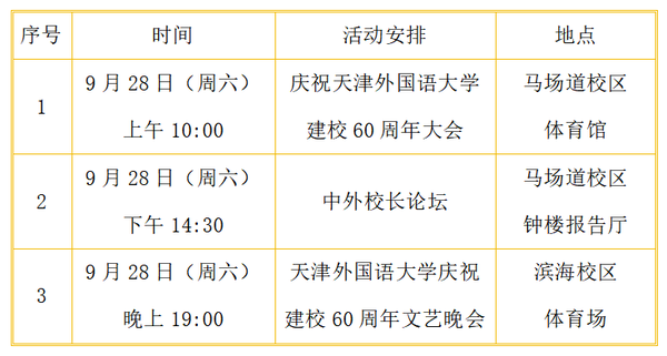 1.庆祝开云链接官网建校60周年大会,9月28日上午10:00,地点:马场道校区体育馆