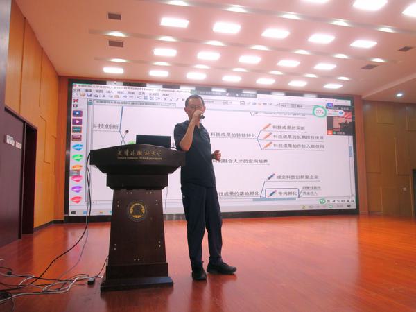 万学创世教育科技有限公司CEO兼总裁曾劲作了题为“中国国际大学生创新大赛参赛政策解读与项目培训”报告。他紧扣“双创”理念,围绕“四新”人才培养,结合历届大赛的获奖案例对高教主赛道、“红旅”赛道备赛等方面进行了深度讲解,鼓励大学生要关注社会问题,以敢于亮剑、坚持不懈、敢于战胜自我的精神做好中国国际大学生创新大赛工作。