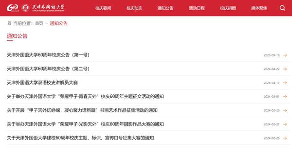 校庆要闻、校庆动态、通知公告