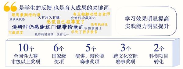 近五年来,课程团队积极参与课程教学实践与改革,曾获校级教学成果奖(本科)三等奖、首届全国高校教师教学创新大赛校赛一等奖;主持并完成校级教学改革项目《英语演讲与展示课程线上线下混合教学模式研究与实践》;发表《基于超星学习平台的混合教学模式行动研究------以英语演讲与展示课程教学为例》等论文七篇;指导学生在校级、省部级、国家级语言类竞赛中获奖。