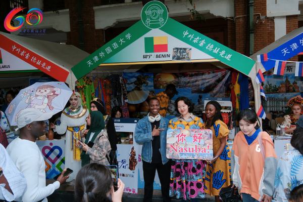 漫步在各个展位间,哥伦比亚的同学们热情地邀请游客们跳起昆比亚,尽显南美的热情奔放和舒畅欢愉;韩国同学用五颜六色的颜料打造的面部彩绘绚丽精致、让人迷乱双眼;日本同学和游客们一起折叠千纸鹤,寄予着浓浓的心想事成的美好愿望;贝宁的美食大大地满足了人们的味蕾,引得大家赞不绝口;哈萨克斯坦的传统服装试穿体验让人们仿佛置身广袤的大草原。琳琅满目的各国手工艺品、特色小吃,天津非遗文化体验区等彰显着不同的民族风情和文化内涵,吸引了游客们倾听、体验。现场特设的天外本科生、研究生招生宣传展位和留学生招生宣传展位前人头攒动,不少市民前来咨询交流。