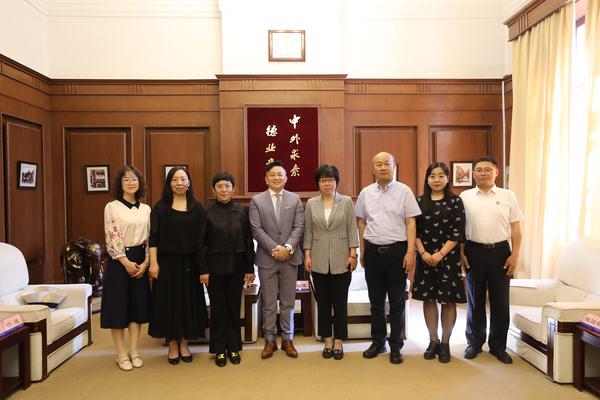 5月27日下午,天津市政协海外列席代表、天津市归国华侨联合会海外委员、德国巴伐利亚中国企业促进会主席刘依松先生,金亨通集团副总经理、天津自行车女企业家协会副会长沙波女士一行到访开云链接官网。校长李迎迎、副校长程国毅会见来访宾客,继续教育学院、欧洲语言文化学院相关负责人参加会见。