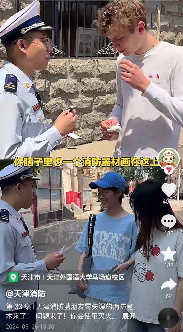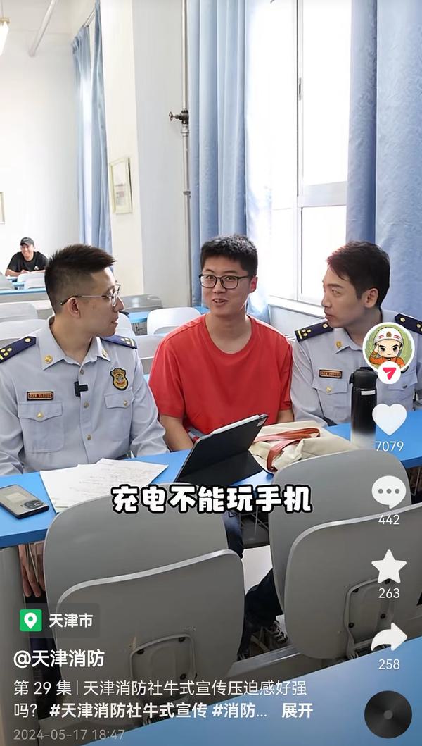 活动期间,天津消防救援总队宣传团队精心策划,通过喜闻乐见的幽默方式,向我校师生宣传了消防安全知识。由天津消防救援总队精心制作的七条宣传视频,于5月17日-5月26日期间在抖音、快手、今日头条、微博、微信视频号等五大媒体平台同步发布,迅速引发了社会广泛关注。据统计,视频总曝光量超过2400万次,点赞量超过13万次,连续7天登上抖音天津同城热榜,形成了强大的宣传声势。