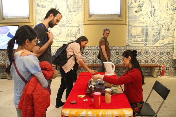 5月18日,里斯本大学孔子学院应邀在葡萄牙国家瓷砖博物馆举办系列中国文化活动,成为2024国际博物馆日庆祝活动的新亮点。活动当天,孔子学院的教师们精心准备了书法、茶艺、古筝演奏、书写中文名和中国传统服饰等丰富多彩的项目,吸引了大量参观者驻足欣赏和体验。