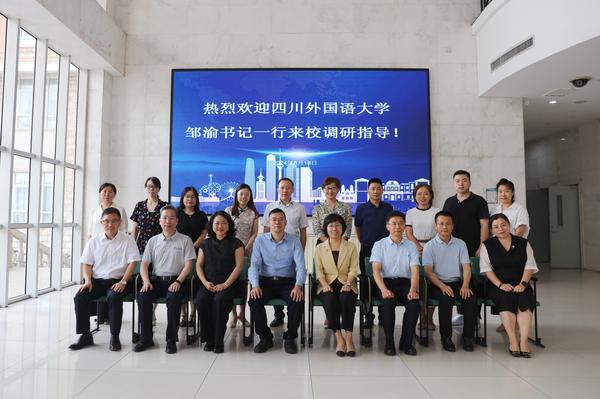 6月18日,四川外国语大学党委书记邹渝,党委常委、副校长郑白玲带队,围绕外语院校发展和挑战、绩效工资改革与高层次人才队伍建设、招生就业等方面来我校调研。校党委书记周红蕾、党委副书记胡志刚、副校长余江出席座谈会。校办公室、党委教师工作部、教务处、招生就业处负责同志参加座谈。