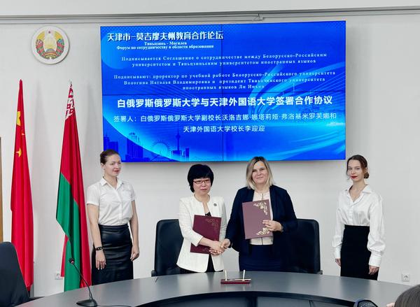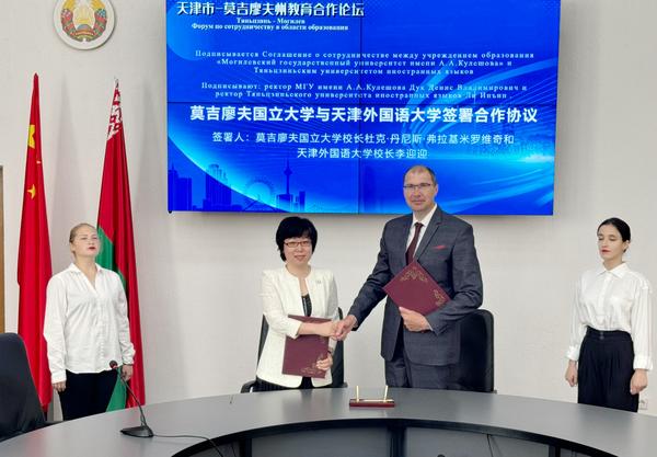 6月26日,代表团出席由我校与白俄罗斯莫吉廖夫国立大学联合主办的“天津市—莫吉廖夫州教育合作论坛”。李迎迎代表学校在开幕式上致辞,并分别与莫吉廖夫国立大学和白俄罗斯-俄罗斯大学签署校际间合作协议。