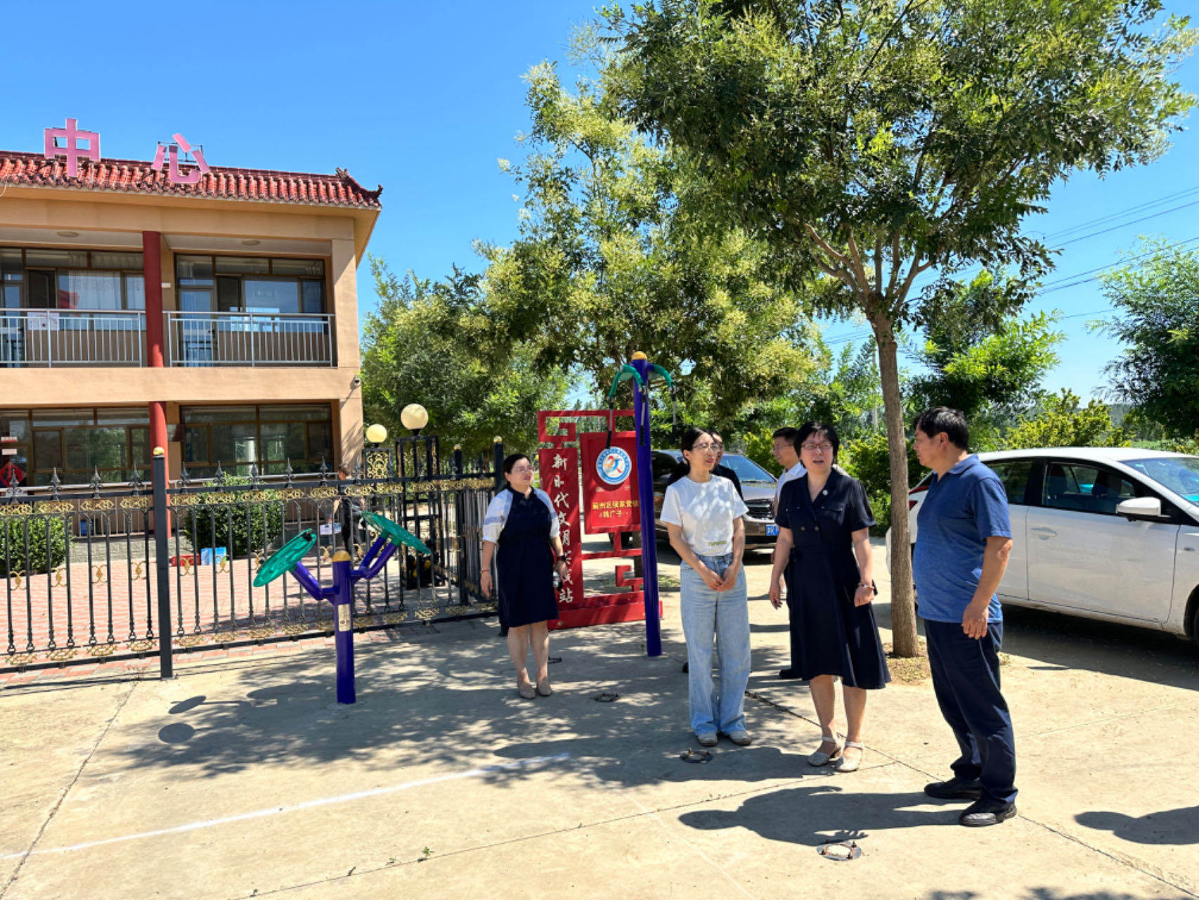 座谈会后,校领导一行先后前往韩庄子村和南周庄村,实地调研村情村貌,询问了解工作队生活和工作情况。在韩庄子村,驻村工作二队向校领导介绍了党群服务中心的多功能健身广场,作为深入开展农村环境整治提升项目,为村民搭建健身休闲的平台,已成为村民闲暇之时运动娱乐的休闲中心。在南周庄村,校领导视察了党群服务中心周边建设中的“母亲水窖”项目和文化健身广场,工作一队深挖社会资源引进民生工程,建成后将使全村2000余名村民的生活用水质量得到显著改善。