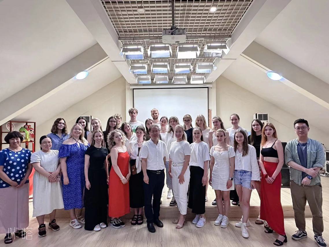 近日,开云链接官网—俄罗斯Silky Way School暑期汉语研修夏令营顺利结业。俄罗斯Silky Way School带队教师娜斯佳、欧列格,天外国际合作与交流处、国际教育学院相关负责人与学员们共同庆祝结业。
