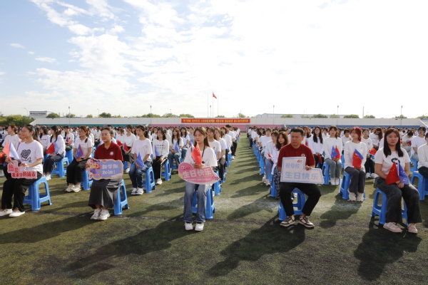 在雄壮的国歌声中,五星红旗冉冉升起;“击鼓明志”振聋发聩,激昂青春振奋精神。今年学校迎来六十华诞,场馆内五彩祝福横幅和“60”组字造型营造了浓郁的校庆氛围。