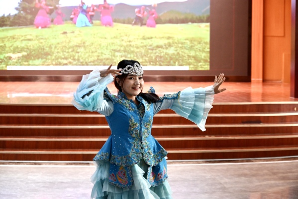 来自新疆哈萨克族的同学带来了哈萨克族舞蹈《鲜花》,展现了“传承中华优秀传统文化,各民族文化大交融、大团结”的青春风貌。支教师生共唱《但愿人长久》,把古典浪漫发挥到了极致,表达了对未来生活的热爱与希望,将本场座谈会的气氛推向高潮。
