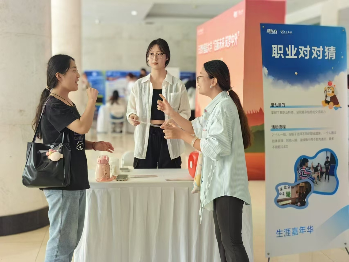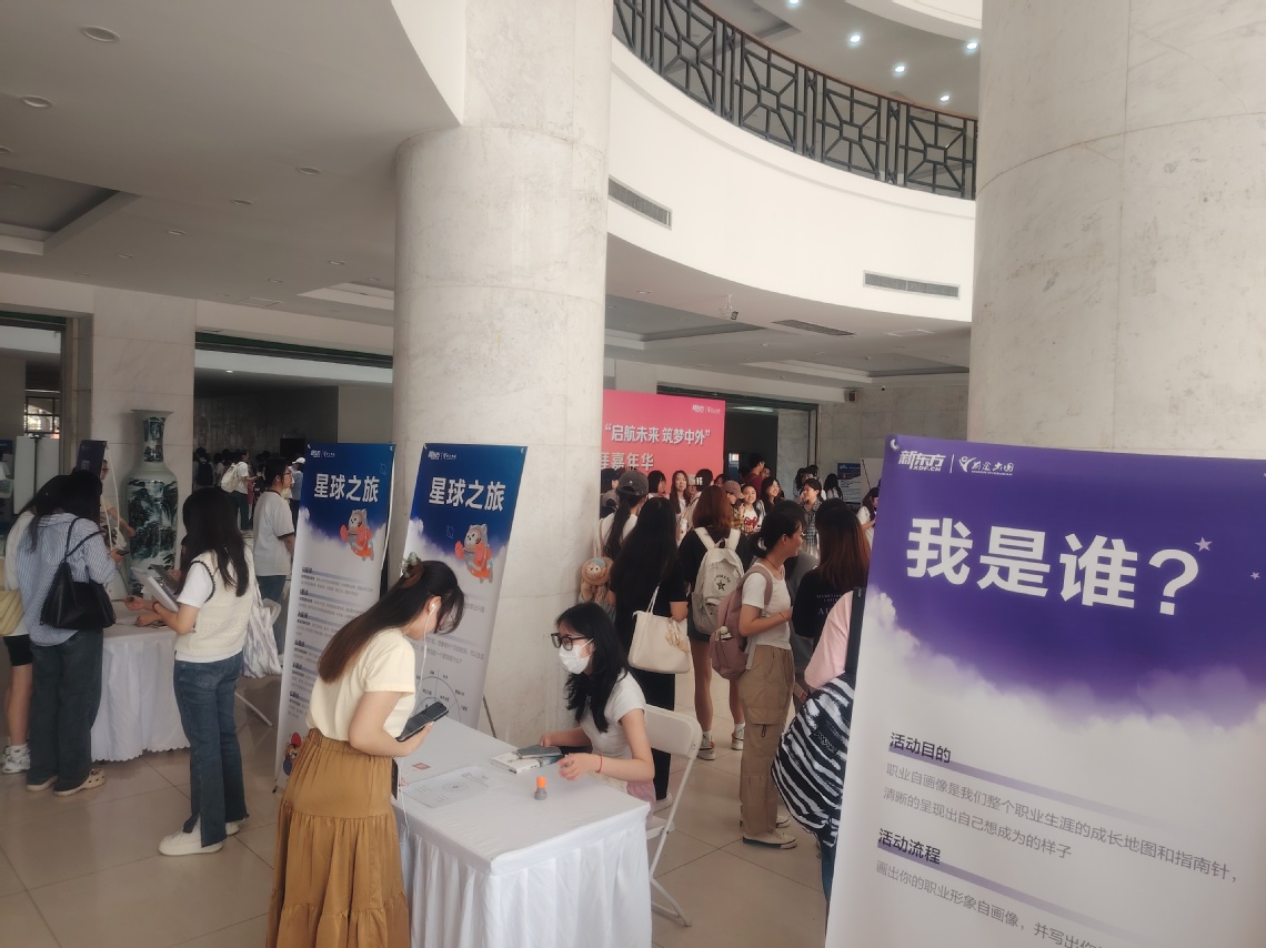 仪式结束后,天外首届“启航未来 筑梦中外”生涯嘉年华活动正式启动。活动针对职业性格内部探索、职业特性外部探索、求职能力提升等学生关注的就业问题,以生涯发展理论为依据,设置了生涯唤醒、职业探索、能力提升、织梦未来4个板块和“职业自画像”“职业对对猜”“简历找茬”等10个体验环节。通过层层闯关的方式,助力学生掌握自我认知、职业认知、生涯决策及行动力等方面的知识技能,为学生带来了一场别开生面的职业生涯体验课,吸引了600余名中外学子踊跃参与。