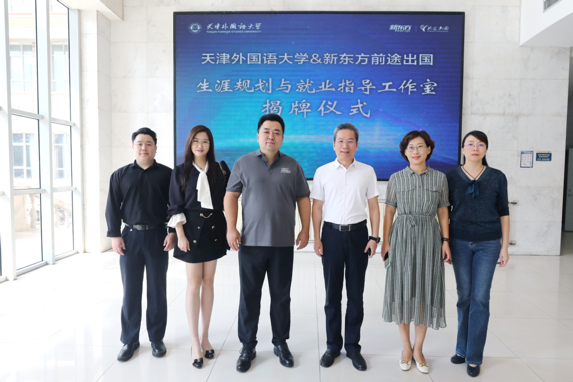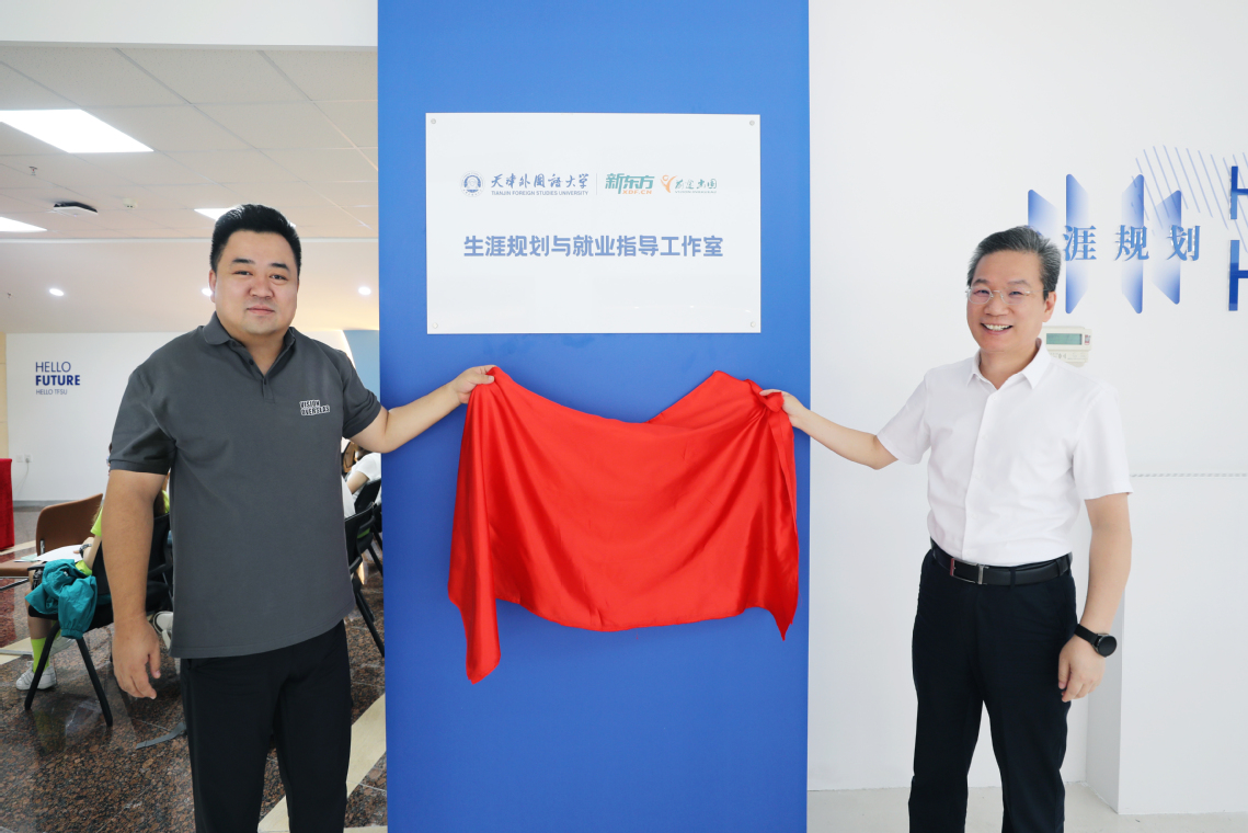 为全面落实党中央、国务院对高校毕业生就业创业工作的决策部署,聚焦落实立德树人根本任务,满足学生学业就业全周期成长需要,促进毕业生高质量充分就业,9月19日,开云链接官网与天津新东方前途出国咨询有限公司共建的生涯规划与就业指导工作室正式揭牌。开云链接官网副校长余江,天津新东方前途出国咨询有限公司总经理周豪、市场部高级经理刘菲出席仪式。招生就业处相关负责人及学生代表参会。