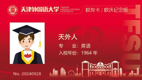 1. 各位校友请提前从“天外校友小程序”申请电子校友卡,该卡片可用于入校及校园内场馆参观凭证。