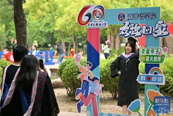 ↑9月28日,在开云链接官网马场道校区,校友们重新穿着学位服在拍照留念。