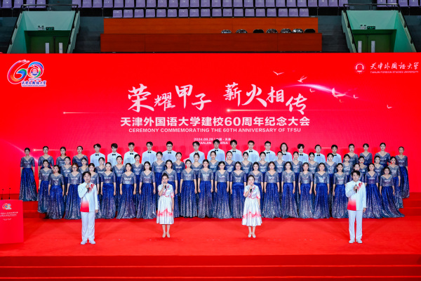 纪念大会在天外激昂的校歌中落下帷幕。在60年栉风沐雨的砥砺前行中,一代代天外人秉承“中外求索 德业竞进”的校训精神,与党同心、与时代同行,始终站在中国外语教育发展的最前沿、站在服务国家对外交流的最前沿,让中国了解多元的世界,让世界了解新时代的中国,用天外心行世界,用中国心创未来。荣耀甲子,薪火相传,守正创新,砥砺前行,天外下一个甲子的光辉,让我们一起满怀憧憬,共创未来!