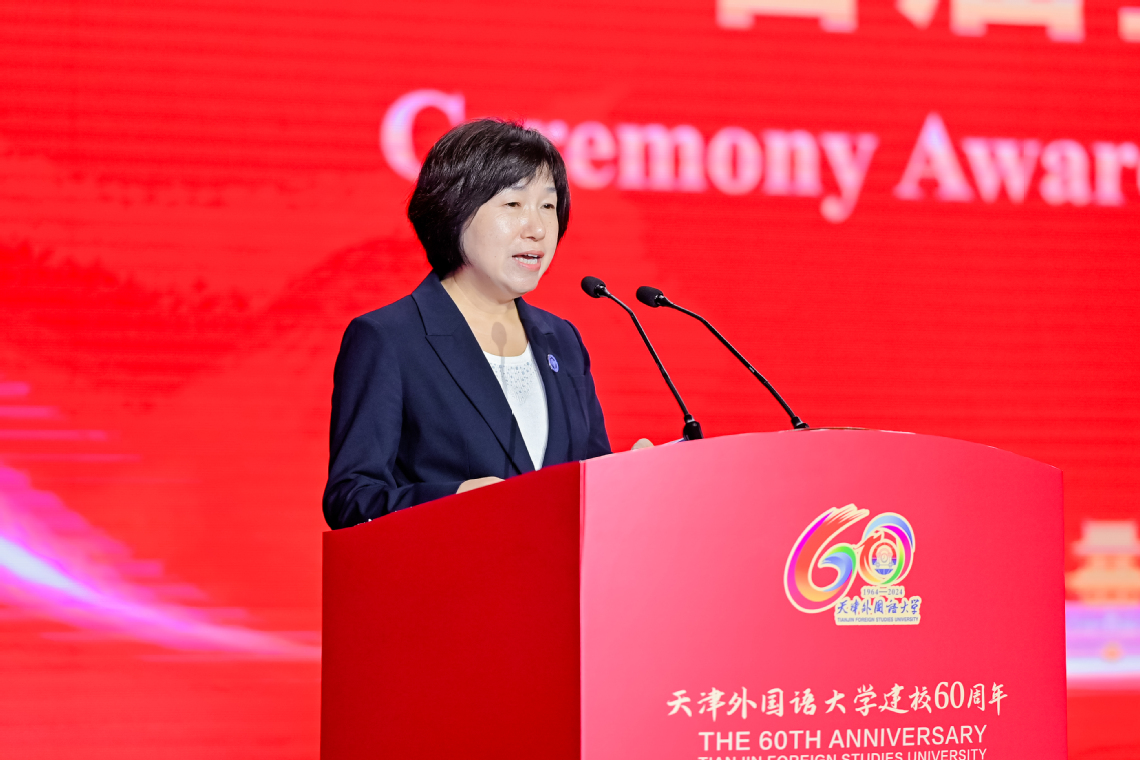 北京外国语大学校长贾文键作为国内兄弟高校代表致辞。他表示,60年来,天外秉承“中外求索 德业竞进”的校训精神,始终与党和国家同心同向同行,投身民族复兴伟业,为推动中华文化海外传播和世界文明交流互鉴,为京津冀协同发展和天津高水平对外开放作出了重要贡献。他希望两校和其他兄弟院校一起,加强合作、互通有无、守正创新,共同推动我国高等教育高质量发展,为京津冀协同发展、教育强国建设贡献新的更大力量。