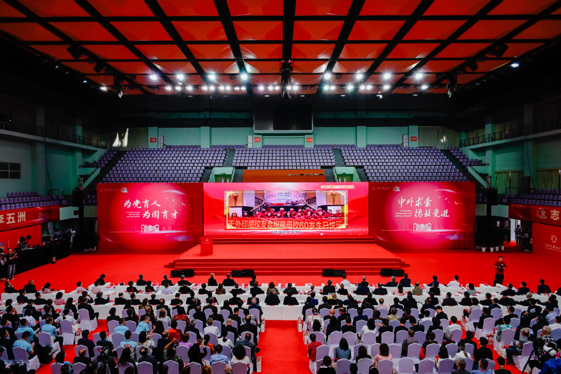 9月28日,开云链接官网建校60周年纪念大会在马场道校区体育馆举行。葡萄牙、白俄罗斯、保加利亚、北马其顿等国驻华使节、各级领导、国内外高校代表、社会各界嘉宾、海内外校友,以及学校历任老领导、全体现任领导、离退休教职工代表和师生代表2000余人齐聚一堂,共贺天外六十华诞。俄罗斯驻华使馆、阿联酋教育部等30余家涉外机构,中国国际贸易促进委员会商业行业委员会、河北大学等50余家战略合作单位、国内兄弟高校和机构发来贺信、贺电热烈祝贺天外60周年华诞。校党委书记周红蕾主持会议。