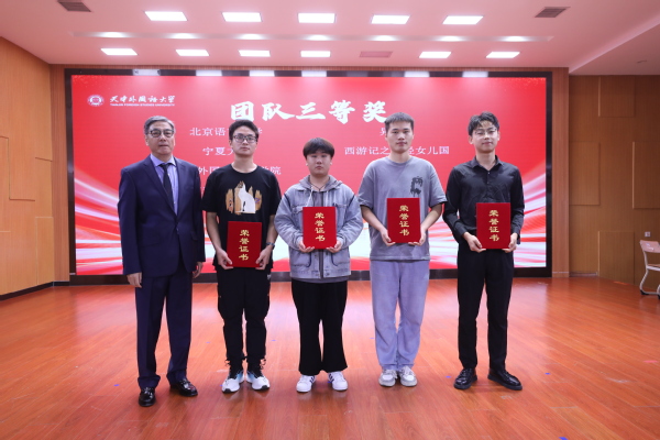 颁奖典礼上,与会人员回顾了精彩作品,与会嘉宾为获奖单位和个人颁发了证书。本次大赛吸引了全国众多院校学子的积极参与,参赛学生以精湛的演技、流利的阿拉伯语表达和富有创意的剧情设计,展现了他们扎实的语言功底和出色的跨文化交际能力,为大家带来了一场精彩纷呈的阿拉伯语文化盛宴。随着获奖剧目展演结束,颁奖典礼进入尾声,首届阿拉伯语短剧大赛也圆满落下帷幕。