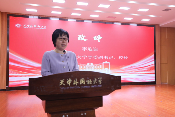 颁奖典礼上,李迎迎代表学校致辞,她对首届阿拉伯语短剧大赛的成功举办表示祝贺,对出席本次颁奖典礼的各位嘉宾表示欢迎,对各位评委专家表示感谢。她提到,中国与阿拉伯国家虽山水相隔,但心手相连,双方之间有着两千余年友好交往的历史佳话。2024年是中国—阿拉伯国家合作论坛成立20周年,以全国高校阿拉伯语短剧大赛等“中国阿拉伯语月”活动为契机,开展丰富多样的人文交流活动,将进一步助力中阿双方的人文相交、民心相通,促进文明交流互鉴。