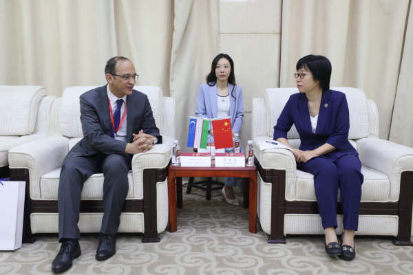 校长李迎迎会见乌兹别克斯坦驻华使馆参赞巴体尔·图尔苏诺夫