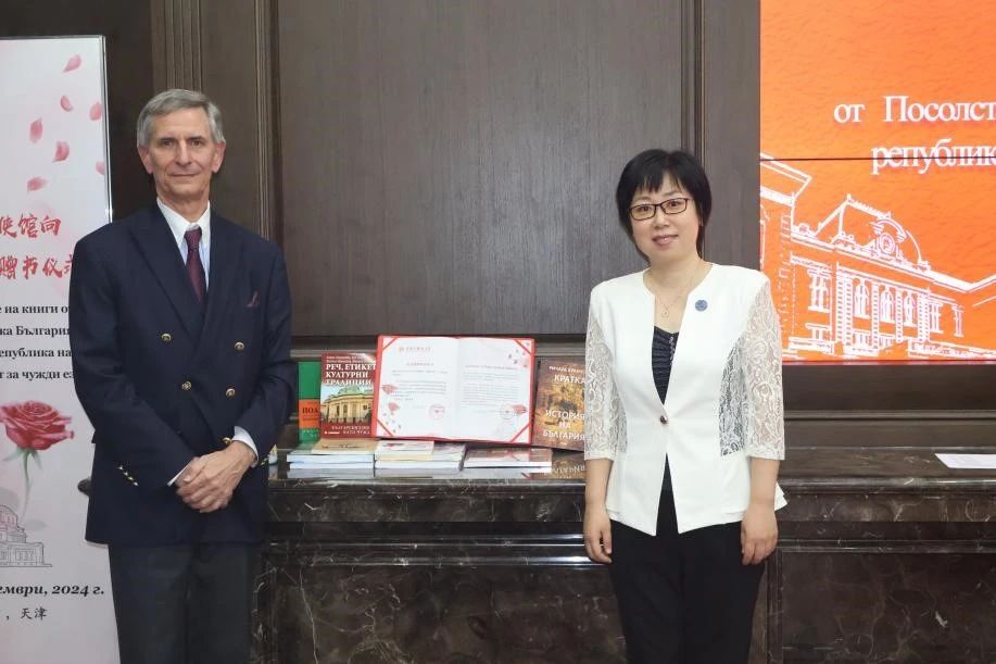 校长李迎迎会见保加利亚驻华特命全权大使安德雷伊·特霍夫,并出席保加利亚大使馆向学校赠书仪式