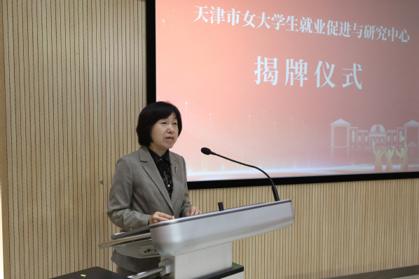 周红蕾代表学校党委向天津市女大学生就业促进与研究中心的成立表示祝贺。她表示,广大女性在社会各条战线奋勇争先展现出“她”力量,起到了“半边天”的重要作用。天外在推动大学生高质量就业创业的过程中,努力为中国式现代化提供高素质女性人才支撑。下一步,天外将以中心为依托,不断将其打造为女大学生就业创业的加油站、蓄水池、资源库、信息港、研究所和助推器,助力以女大学生为主体的就业创业教育体系、服务体系、保障体系迈向更高水平。