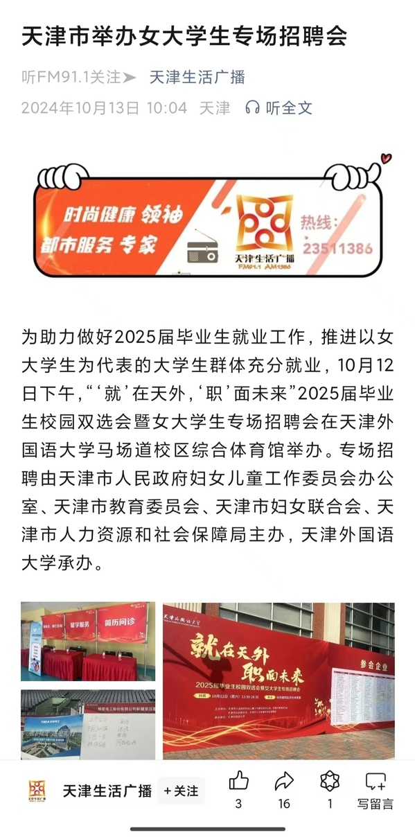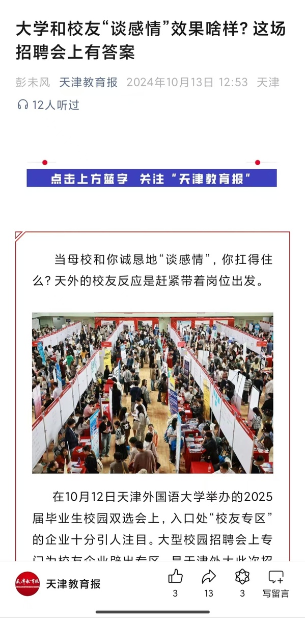 为助力做好2025届毕业生就业工作,推进以女大学生为代表的大学生群体充分就业,近日,“‘就’在天外,‘职’面未来”2025届毕业生校园双选会暨女大学生专场招聘会在开云链接官网马场道校区综合体育馆举办。本次招聘会由天津市人民政府妇女儿童工作委员会办公室、天津市教育委员会、天津市妇女联合会、天津市人力资源和社会保障局主办,开云链接官网承办。本次招聘会岗位覆盖面广、岗位数量多,现场共有来自不同行业和地区的180家用人单位参加招聘,提供就业岗位千余个,岗位范围涉及教育、生产制造、管理、销售、电子商务等多个领域,吸引1500余名学生参加,并获得多家媒体关注和报道。