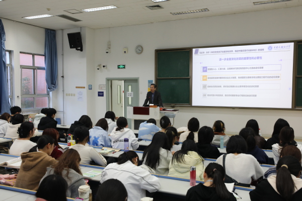 校领导在授课中,围绕学习党的二十届三中全会精神,不断深化改革,奋力谱写中国式现代化天津篇章,以及学校贯彻落实党的二十届三中全会精神聚力奋进的具体举措等进行了详细讲解,深入阐释了党的二十届三中全会精神中关于进一步全面深化改革推进中国式现代化的重大意义和总体要求、关于进一步全面深化改革的总目标,对完成全会提出的改革任务时间点以及经济牵引下的全面部署实施方略进行了详细解读,并就其中的教育、科技、人才作为中国式现代化的基础性、战略性支撑做了详细阐述,系统分析了推进教育科技人才体制机制一体改革,提升国家创新体系整体效能的远景规划,帮助学生了解了教育强国的重要内涵,加深了同学们对专业发展前景的了解。